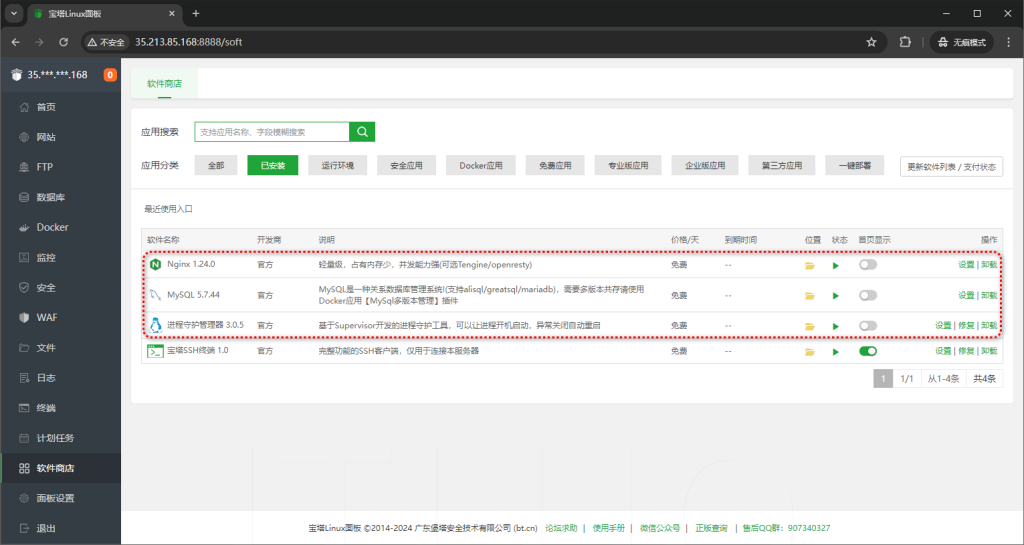 - 宝塔环境配置: