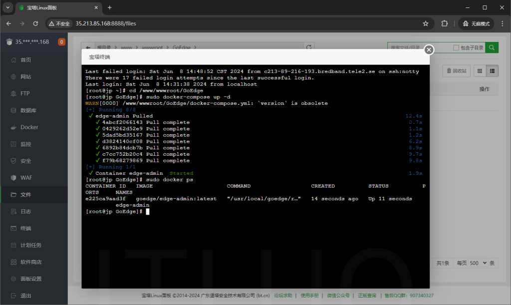 方法3:使用Docker安装GoEdge管理平台