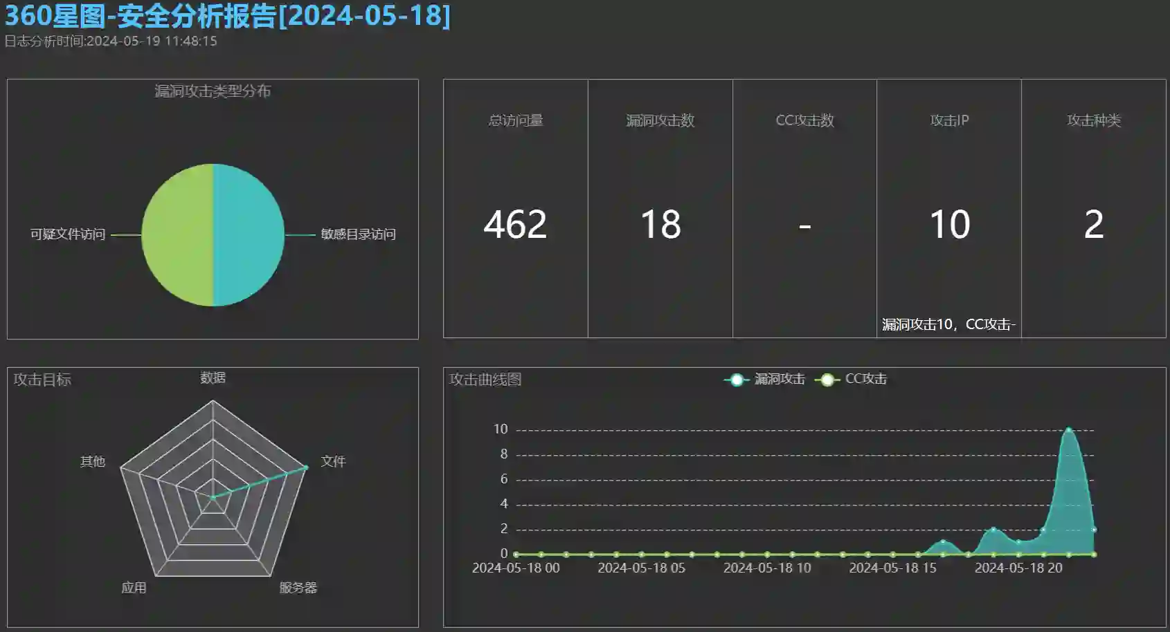360星图不止支持 IIS 日志,同时也能识别 apache 和 nginx,使用也比较简单,可以快速生成直观的日志报告。