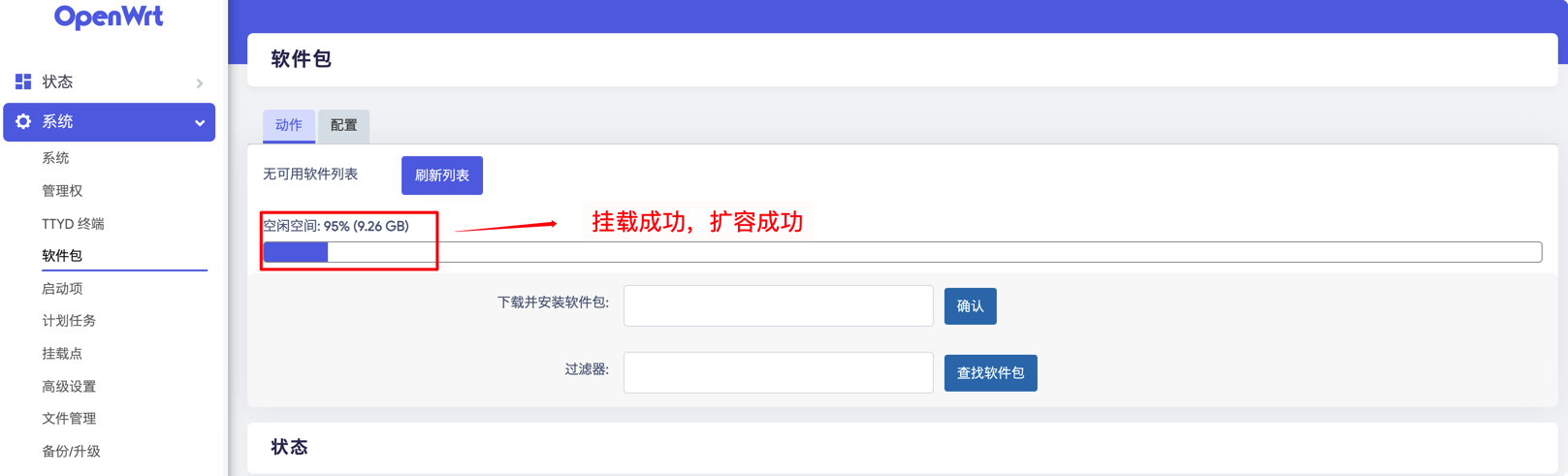 以上就是喵斯基部落提供的关于 OpenWrt 存储空间扩容的两个简单的示例,如果你使用的 OpenWrt 是 EXT4 文件系统可参考本文示例,但需要留意盘符可能有所不同,切勿完全照搬。如果使用的是 squashfs 文件系统那么挂载点需要设置为 /overlay 作为 overlay 分区使用。