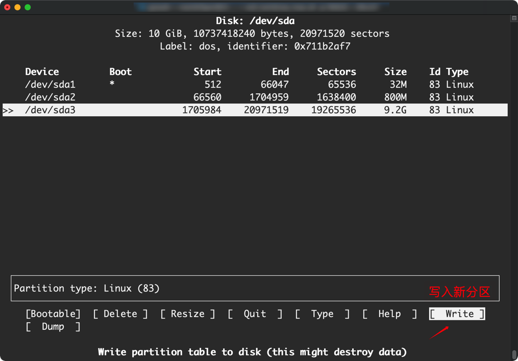 若要使用这块新磁盘,就需要对新磁盘进行分区,运行以下命令: