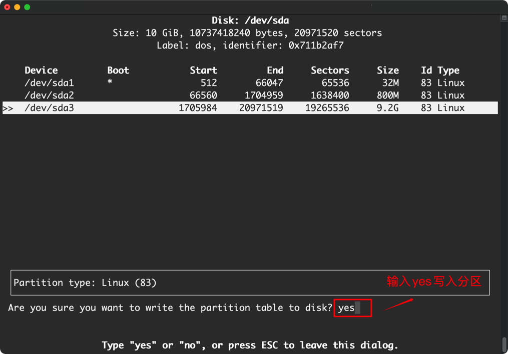 /dev/sdb1 2048 20971519 20969472 10G 83 Linux