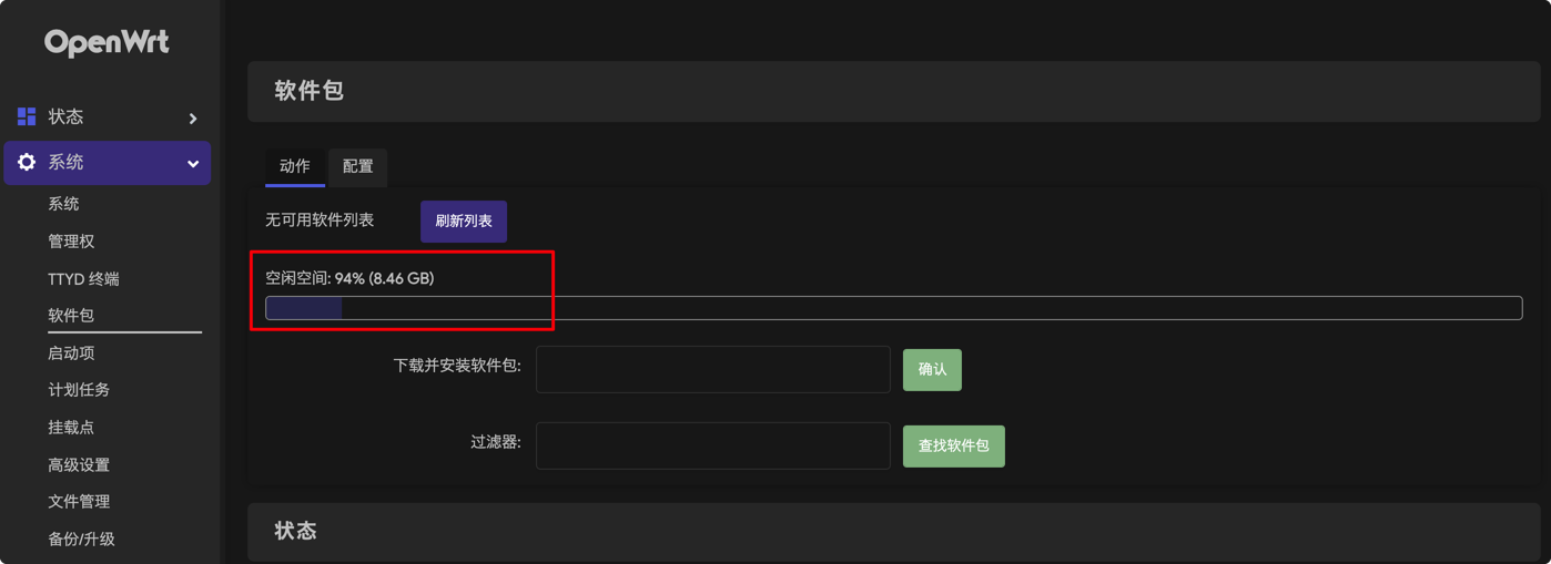 说明:当我们通过群晖 VMM 虚拟机安装 OpenWrt 时,默认会分配一个 10GB 的存储空间,而实际情况中 OpenWrt 存在大量的剩余空间是未被使用的,典型的铺张浪费有木有?OpenWrt 实际使用容量完全取决于 OpenWrt 编译时所设置的固件大小。若我们想要充分折腾软路由,则需要对 OpenWrt 进行扩容。